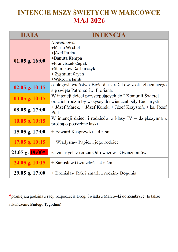 INTENCJE – MARCÓWKA – MAJ